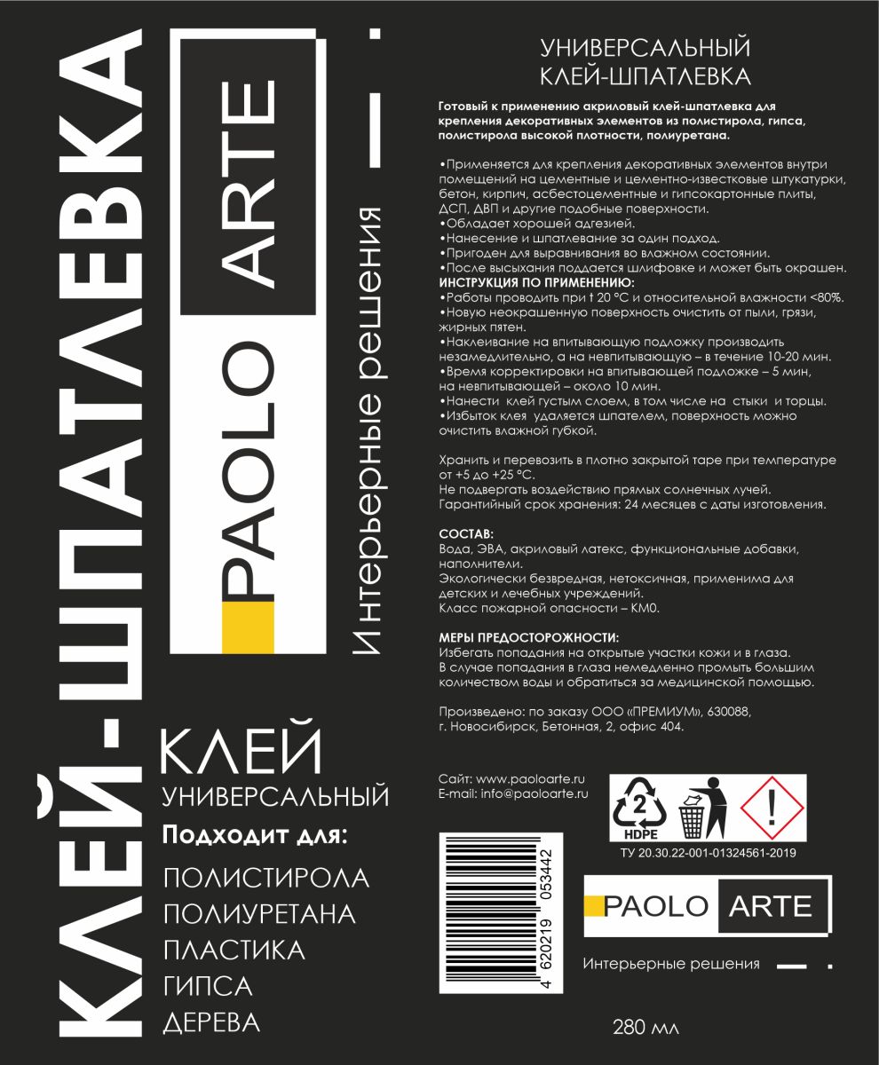 Клей-шпатлевка «Paolo Arte» 280мл.